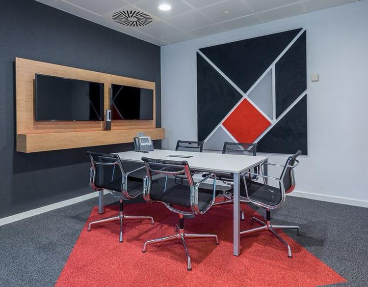 - Duvar yüzeylerinde kumaş kaplı akustik paneller